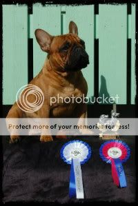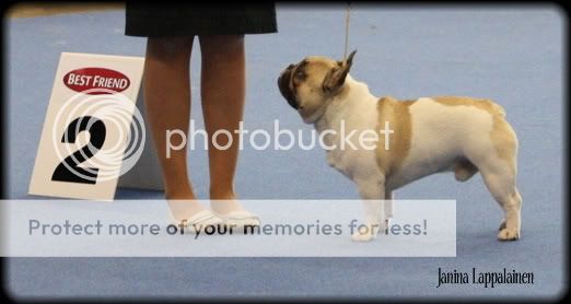 I'm still really pleased of our results, because there were so many high quality males competing with us and Australian judge, who have never even seen fawn-pied frechie before..